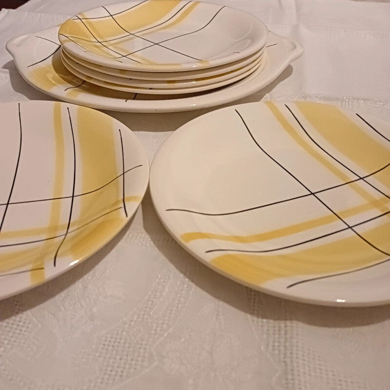 Très joli ensemble de 6 assiettes à dessert et plat vintage année 50-60