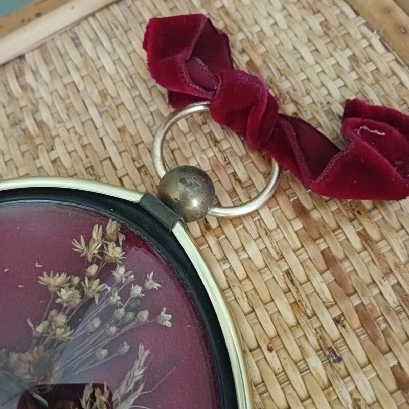 Fleurs séchées sur fond velour rouge