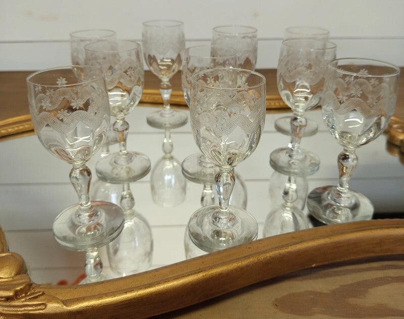 En excellent état compte tenu de l'âge, excepté une griffe et une petite tâche sur un verre (dernières photos) Bien regarder toutes les photos...
