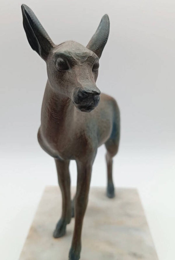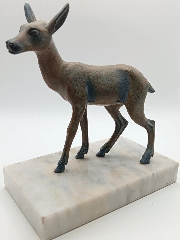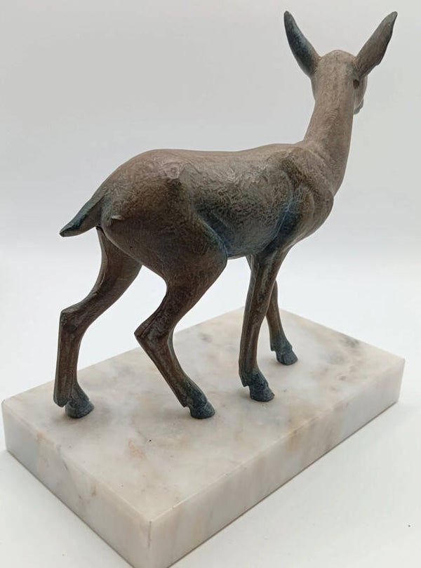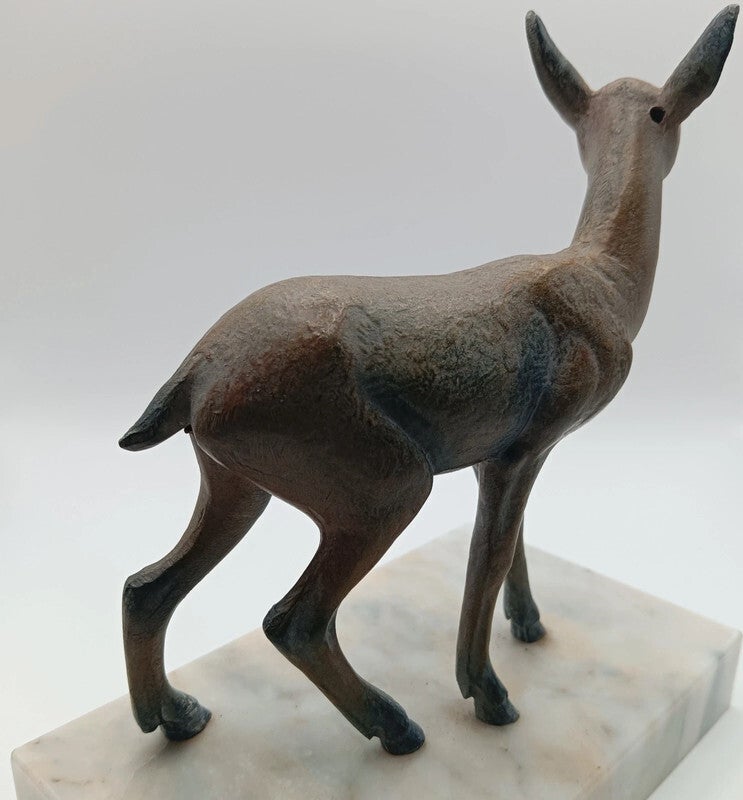 Très élégants serre-livres, thème animalier représentant des biches Le socle est en marbre et les biches sont en régule.