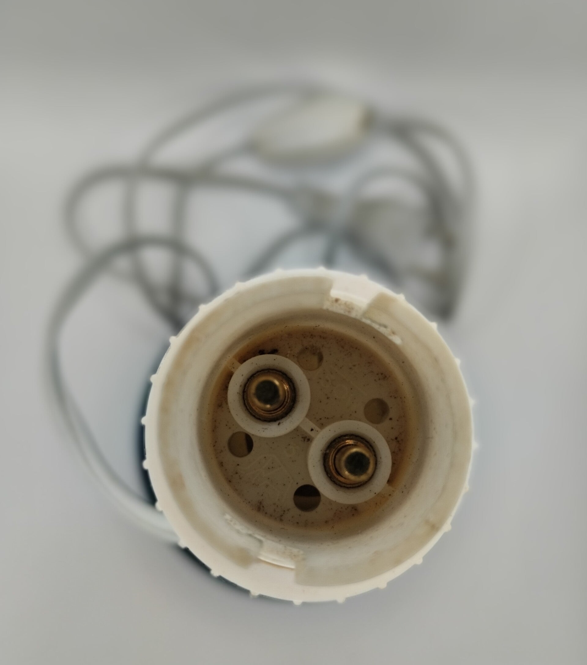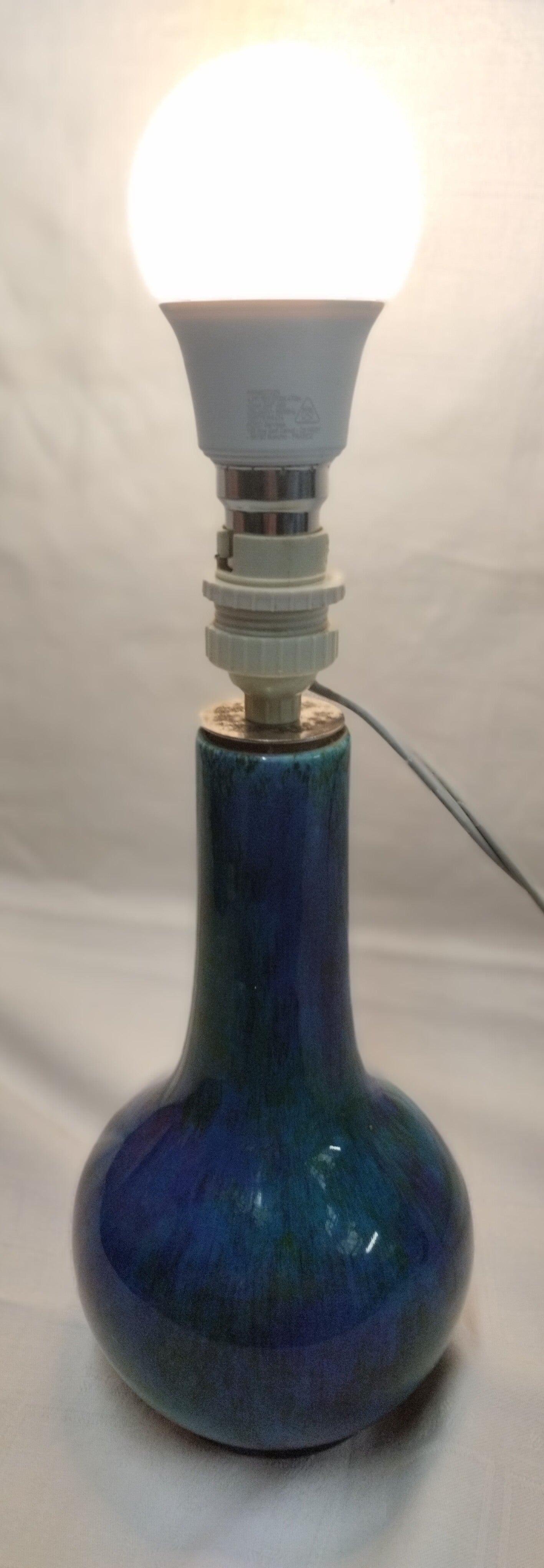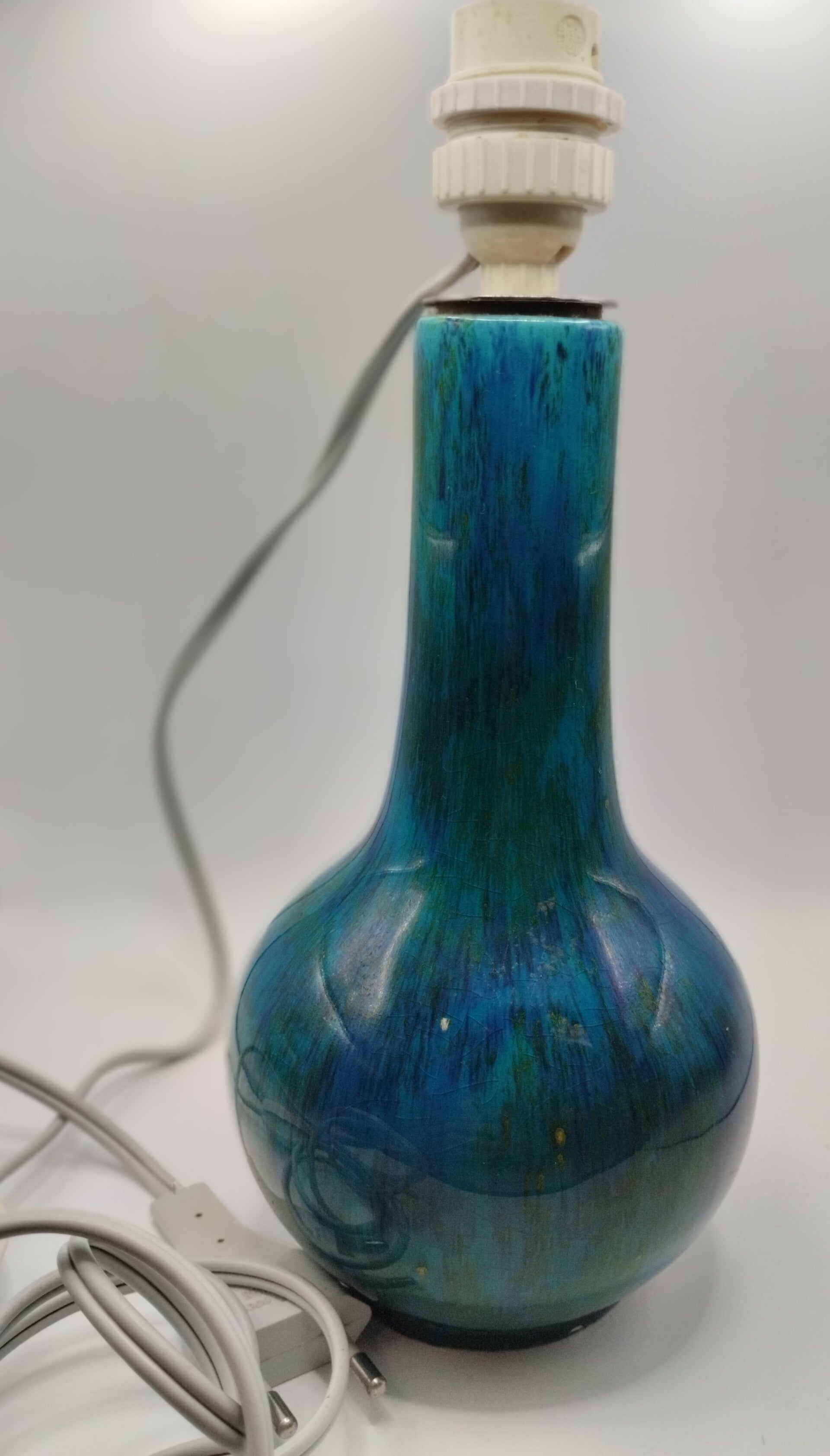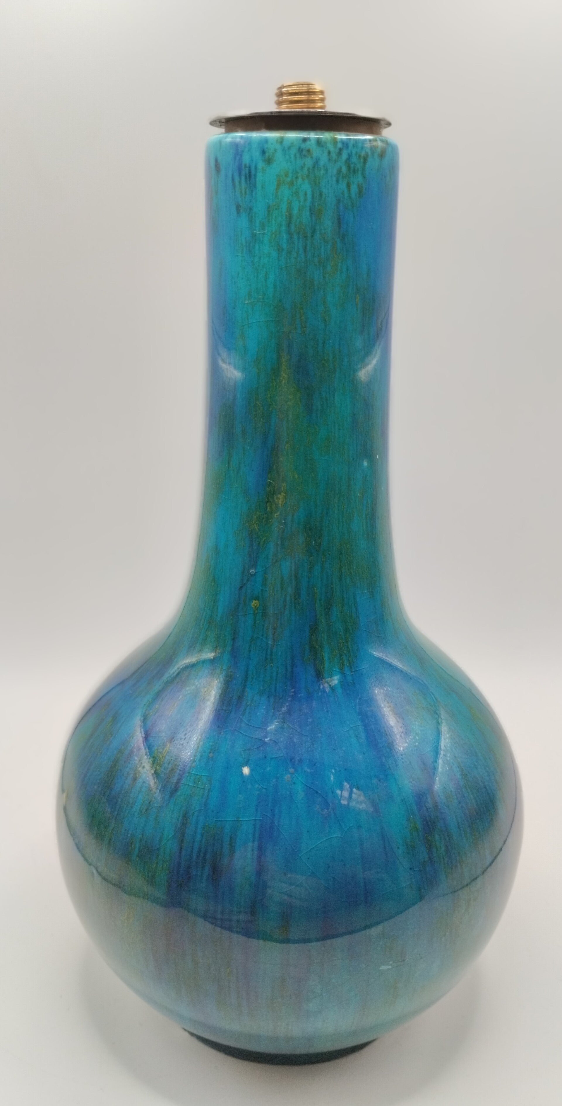 En bon état compte tenu de l'âge. Présence d'un léger défaut et d'un petit éclat au niveau de la base du vase ... Traces d'oxydation au niveau de la base de la douille. Bien regarder toutes les photos