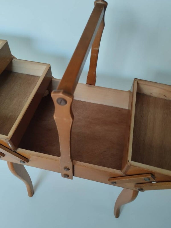 Travailleuse/boîte à couture en bois, sur pied