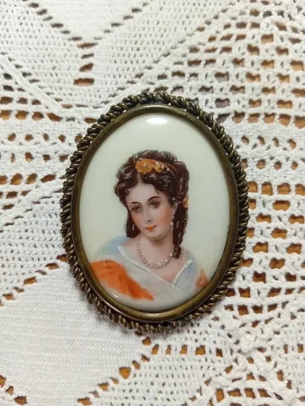 Ancienne broche motif portrait de femme