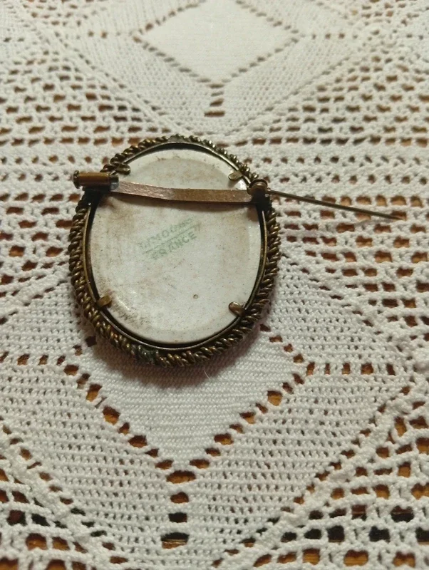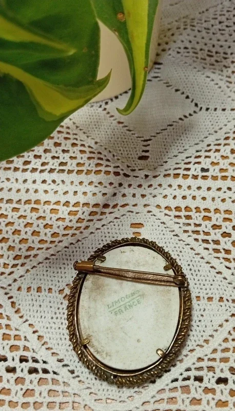 La broche est ancienne et présente quelques défauts liés à l’âge et à l’usage, notamment des traces à l’arrière de la porcelaine (voir dernières photos).