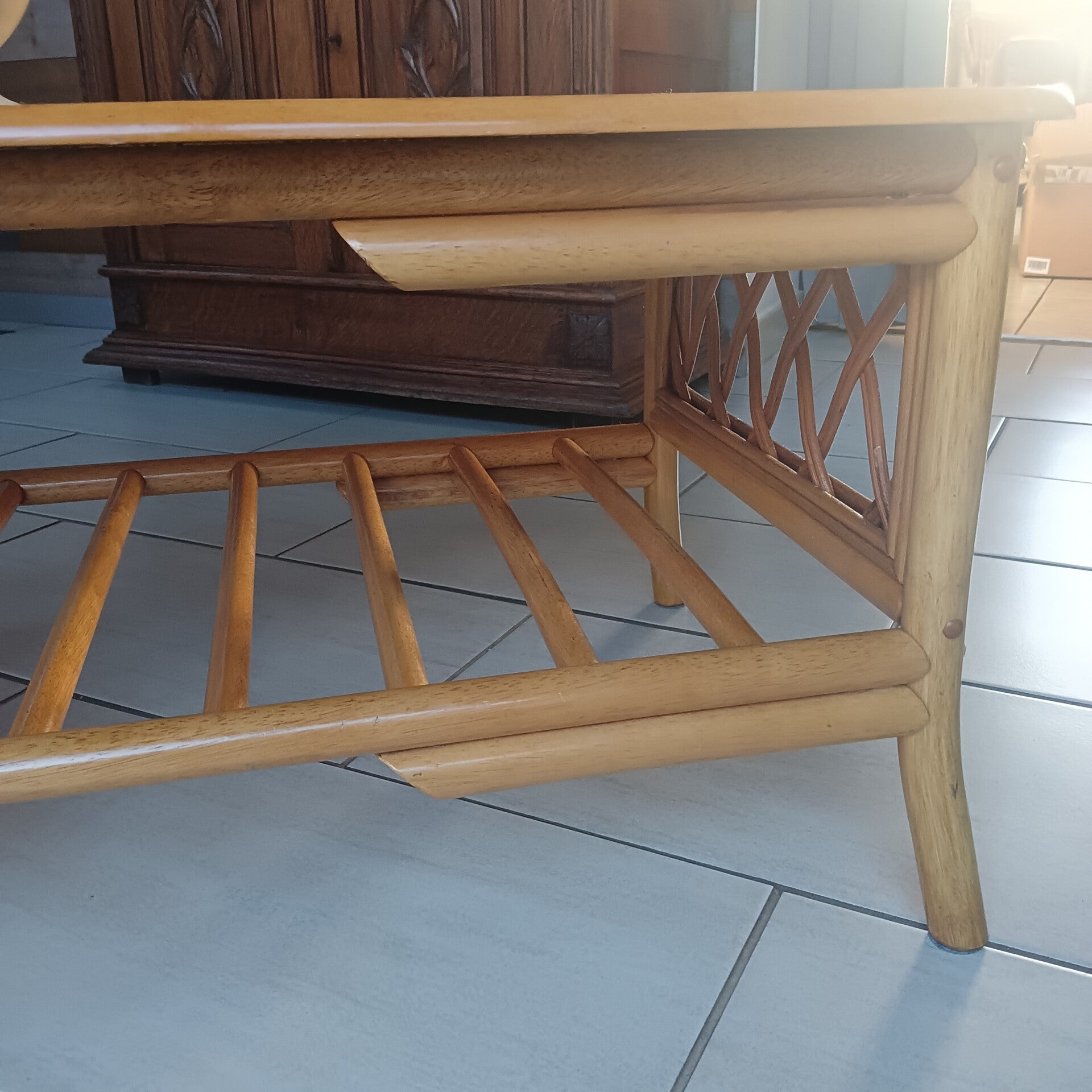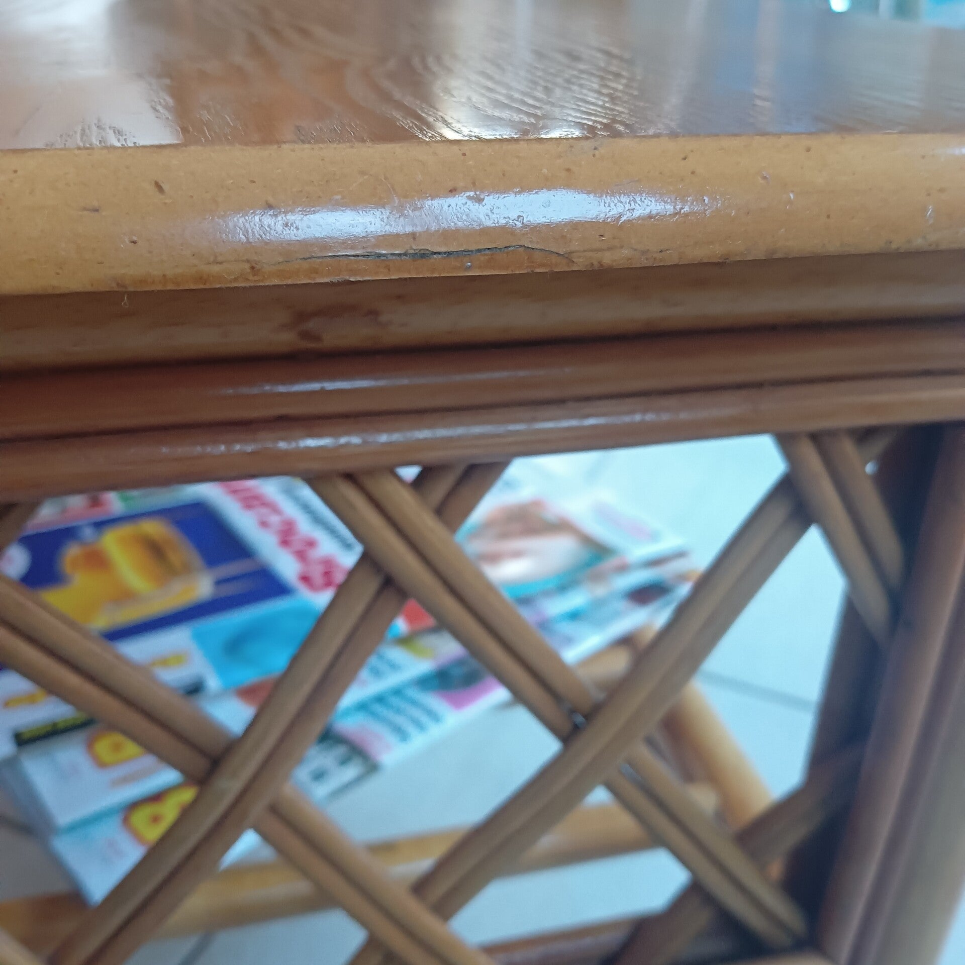 Bel état compte tenu de l'âge. Cependant la table présente des traces d'usure du temps et d'utilisation notamment des rayures sur le plateau, une fissure superficielle sur le côté du plateau, ainsi que des traces sous le plateau. ⚠️Bien regarder toutes les photos⚠️