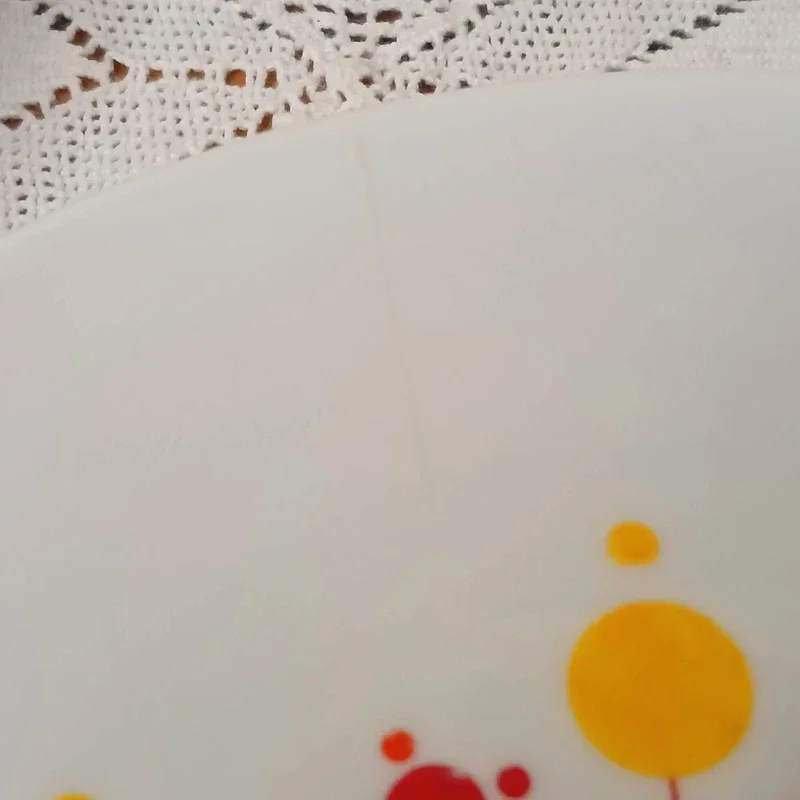 Quelques petits manques de couleurs sur certaines assiettes, un minime éclat sur une assiette, présence d'un "cheveux" sur une autre assiette ( voir photos)